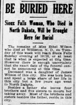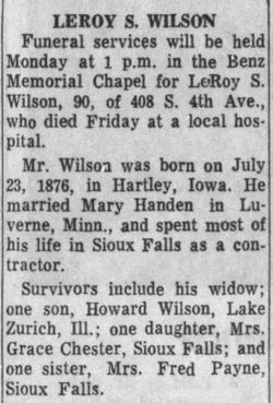 Samuel Walker Wilson died August 27, 1946 in New Leskeard, Ontario.