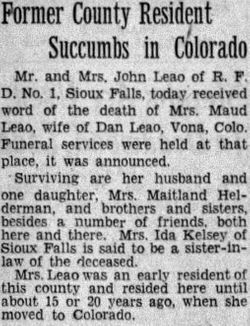 Vivian Kennison, 20, married R.F. Faylor in Xioux Falls on May 16, 1924.