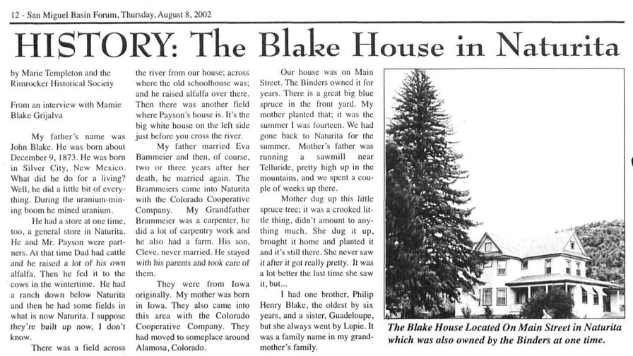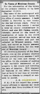 One article in the December 1919 Montrose Daily Press included "J. H. Brammeier of Naturita has a position in the senate."