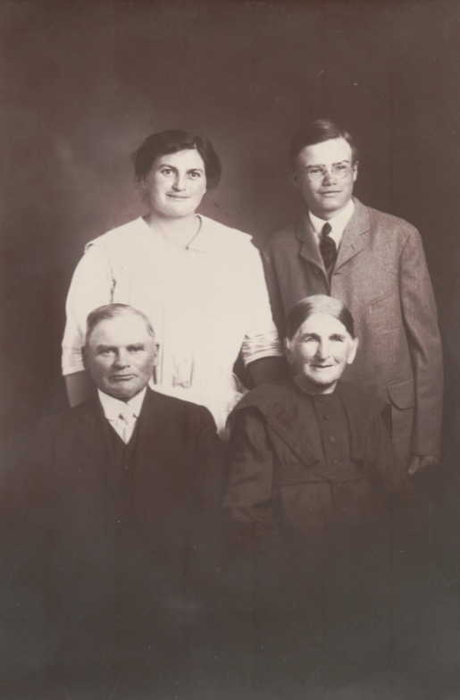 Four generations of the Brammeier family. The youngest is Paul Dehn, his mother Pauline Brammeier Dehn, her father John W. Brammeier and his mother Mrs. Brammeier.