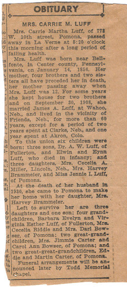 She shares a tombstone is Carrie Luff 1856-1944.