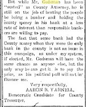 June 1912 "Attorney P. B. Godsman has moved his family into the residence