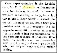 1922 " Election of one member of the Colorado House of Repsesentatives, to represent the Counties of Lincoln, Kit Carson and Cheyenne to succeed Hon. Paul B. Godsman."