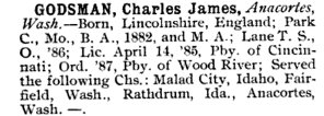 In 1900 Skagit County, Washington, Chas. J. Godsman is a minister,