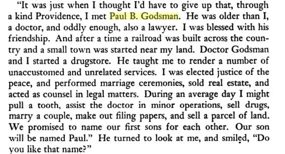 In 1909 P.B. Godsman was an attorney, pallbearer for the funeral of A.W. Winegar.