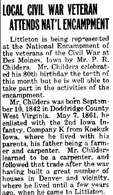Preston R. Childers enlisted 1861, in K, 2nd Iowa Infantry, mustered out 1865.