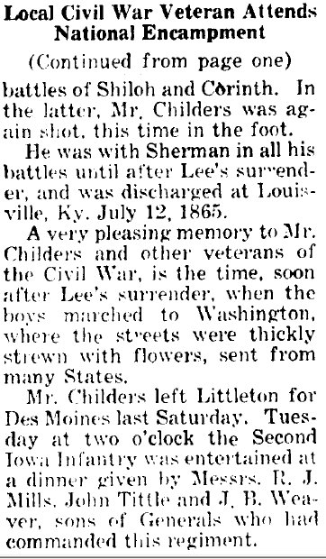 William Homer Childers, per # 1146006482, is buried in Littleton 1869-1939.