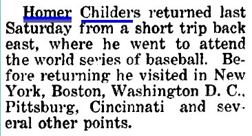 "Homer Childers motored to Greeley Sunday and spent the day with his sister Mrs. Rose Koogle."