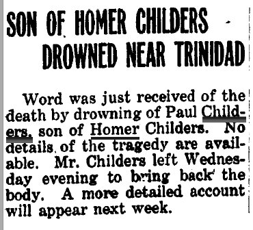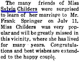 "Homas" Childers is ranching in Douglas County in 1910, with "Ohid" 30, Paul, 12, and Sylvia 11. In 1919 Douglas County, "Olivis" Childers divorced "V Homer Childers."