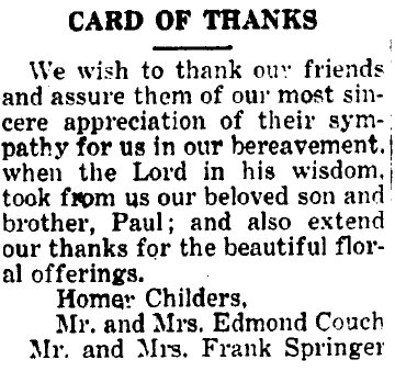 Paul H. Childers - April 21, 1901 - July 10, 1923 is buried in Sedalia #2 11440586.