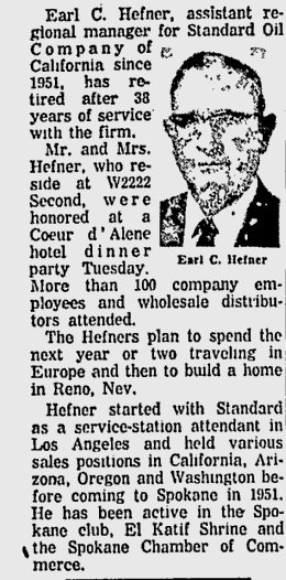 Earl C. Hefner, born Jan 11, 1902 in Colorado, mother's name Bills, died April 21, 1994 in San Diego County.
