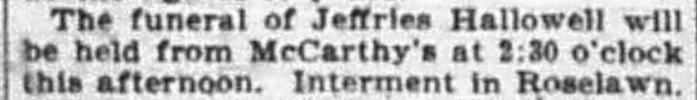 Emma Jane Hollowell is in the obituary index - Marion Chronicle January 16, 1947, and Marion Leader Tribune January 16 and 17, 1947.