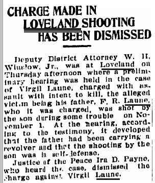 1920 Fort Collins "Attorneys Ab Romans and Finley R. Laune of Loveland were business visitors in the city Wednesday."