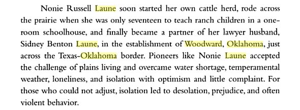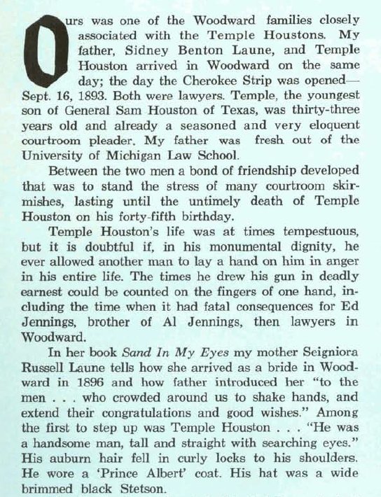 "Seigniora Russel "Nonie" Laune's autobiographical account of life in early Woodward, Sand in My Eyes,