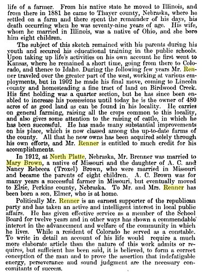 In 1920 Lincoln County, Richard is 60, married to Mary E. Renner 43 Missouri, and they have Elmer C. 7, Nebraska. James L. Blumfield 13, Nebraska, is a stepson.