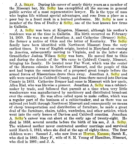 Sam J. Selby 1853--1932 is buried in Brown County, Horton Cemetery # 119901722.