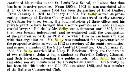 In 1870 Daviess County, Catherine Selby is 40, Samuel 16, Sarah E. 15, Mary F. 13, and Allen 11.