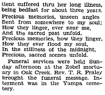 1948 "James Sublett went to California this week to live with his daughter. HJe sold his house to Sid Adams."