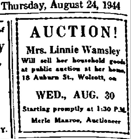 In 1960 the Wolcott, New York newspaper reported Mrs. Stanley Roney (Mrs. Rachel Roney) and her six-year-old granddaughter Vickie Doughlas, ... while visiting at the home of Mrs. Linnie Wamsley, formerly of Wolcott, in Denver Colorado ..were robbed by a sneak thief.