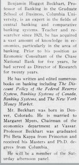 Professor of banking at Columbia University, 1921-1963 (Columbia M.A., 1920; Ph.D., 1924) who was forced to retire at the age of 65.