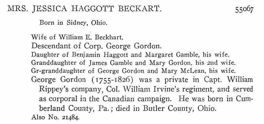 Jessica was born February 11, 1867 in Shelby, Ohio to Benjamin Pearl Haggott and Margaret Agnes Gamble 1826-1876.