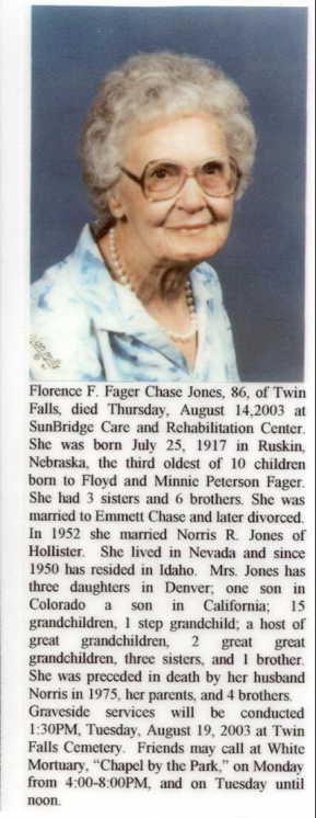 Florence was born July 25, 1917 in Ruskin Nebraska