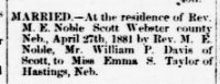 married Maggie R. Noble on April 20, 1890 in Webster County, Nebraska.