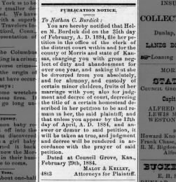 March 1900 Council Grove "Nate Burdick was in Junction City the early part of the week."