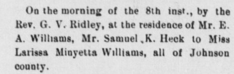 Son of Samuel Kunkle Heck and Clarissa (Larissa) Molly Williams
