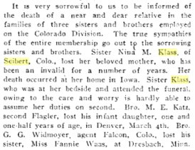 January 1913 "Born, to Bro. and Mrs. Maurice E. Katz, of Flagler, Colorado, a girl."