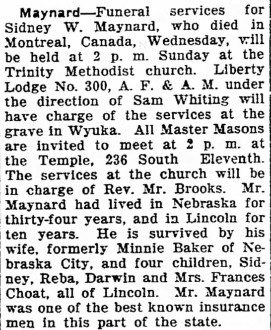 In 1920 Lincoln, Nebraska, Sidney W. Maynard