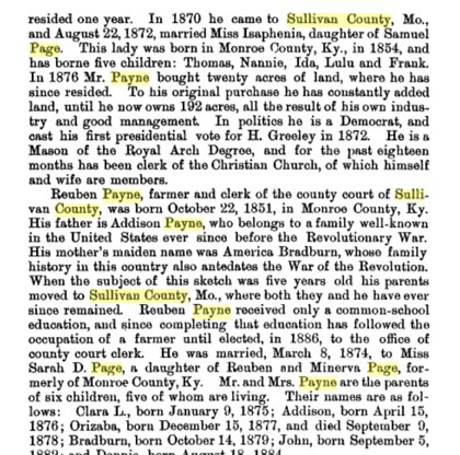 Wolford 1862-1884 is buried in Sullivan County # 30590837. "Son of Reuben Smith Page and Minerva Payne."