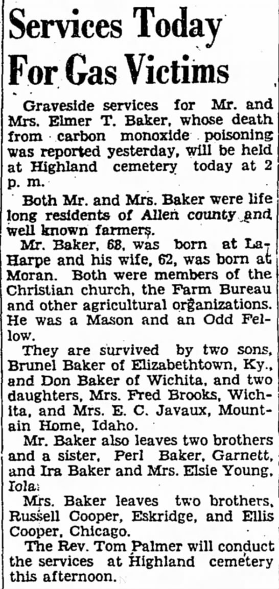 Garnett; a sister. Mrs. Elsie Young of Glassboro, N. J.; a brother, Ira Baker of Iola;