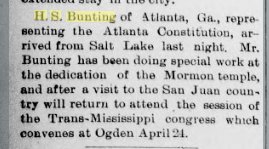 "Henry Stanhope Bunting, 1865-1948, was an author and historian. He wrote several books on the subject of advertising and merchandising, as well as several histories about the Presbyterian Church in Texas and a biography about his father, Robert F. Bunting, a Presbyterian minister who served as the chaplain and regimental historian for Terry's Texas Rangers, the Eighth Texas Cavalry. After the war, Bunting established churches in several cities, most notably, the First Presbyterian Church of San Antonio"