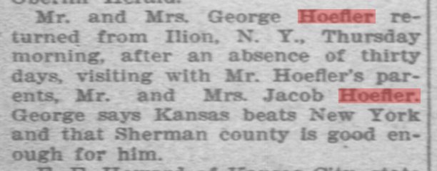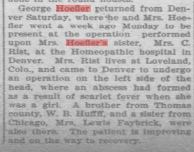 1904 Goodland, Kansas "Mrs. George Hoefler purchased this week the half section of land