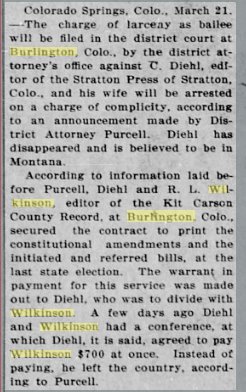 Robert and Louisa A. Wilkinson divorced in Kit Carson County in 1918.