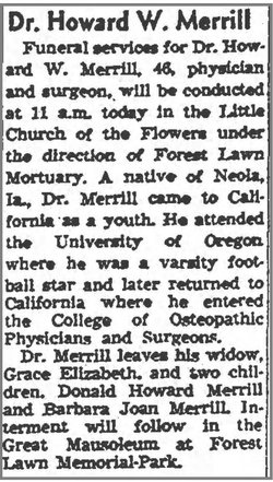 He registered for WWII in Los Angeles, mother Louise A. Merrill his reference.