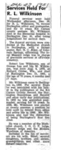 daughter Mrs. R. L. Wilkinson. "