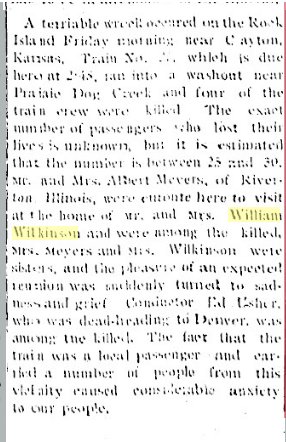 She was accompanied by a brother of Mr. Wilkinson of Riverton, Illinois."
