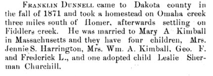 1909 Dakota County, Nebraska "Wm. Kimball, who went to Colorado