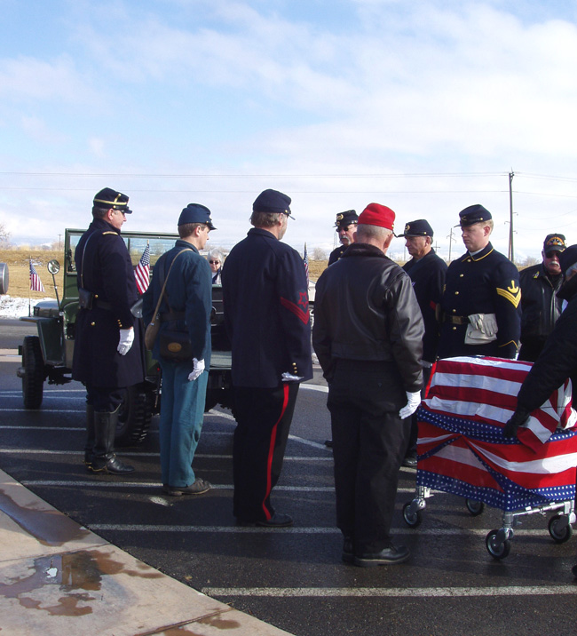 He was between 35 & 45, so the Veterans Cemetery, Sheriff Dept, Sons of Union Veterans, Legion of the West, Camp Number 7 helped with the burial today. The identity of the solider is unknown and the first unknown buried in the Veterans Cemetery in Grand Junction.