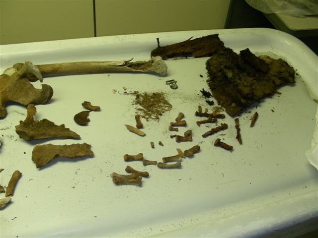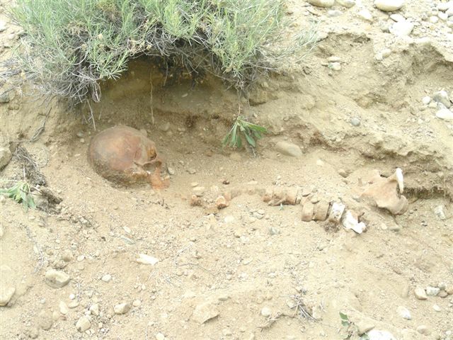 The below pictures are the remains of a body, presumably a man, since it looks like the buttons were off the "Great Coat". He was found by a fisherman along the Arkansas River about 1/4 mile north of the 82 and 24 Junction in Colorado.?He was buried about 600 ft. south of the lone grave along the old stage coach road that runs along the east side of the river. We are trying to identify the remains or possibly through researching mining claims and land grants to see if he was buried on his own property in the time period of 1860-1870 and he could have been brought back from another location to be buried.