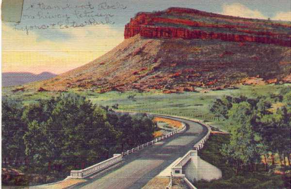 The Steamboat Rock and the North St. Varian Highway to the Rocky Mountain National park between Lyons and Estes Park, Colorado.