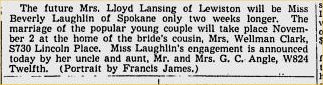 Gregg Curtin Angle died in Spokane Oct 30, 1946, son of Henry B. Angle and Mary Nicewander.