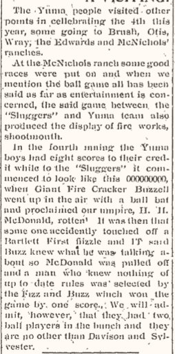1908 Yuma "Our ball player, Buzzell, arrived the middle of the week with his car of goods."