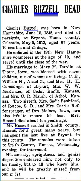 William Henry Buzzell registered for WWI in Yuma County, farming, born May 9, 1876. His reference was Mrs. H. H. Cummings of Route A, Yuma.