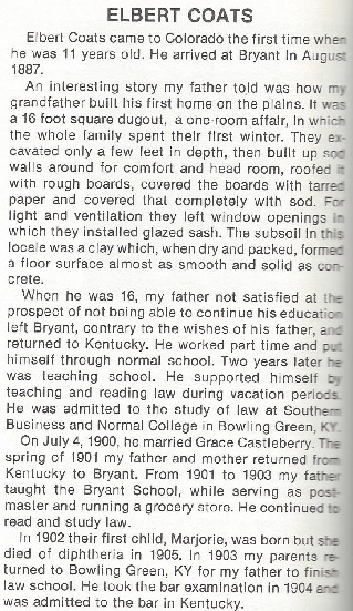 Elbert Wilson Coats, Jan 18, 1876 registered in Logan County with a Sterling address, farming by himself, married to Grace.