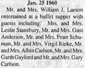 1959 Among guests Saturday at the Haxtun, Colo., wedding of De-Laine Larson, daughter of Mr. and Mrs. William J. Larson, Haxtun, and Gary Carlson, son of Mr. and Mrs. Noble Carlson, McPherson, Kansas, will be the bridegroom's parents, his grandmother, Mrs. W. R. Carlson, and Mrs. Glen Becker and son, all of McPherson.