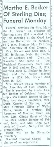 "Marha" E. Rauscher married John E. Becker Feb 18, 1915, recorded in Logan County.