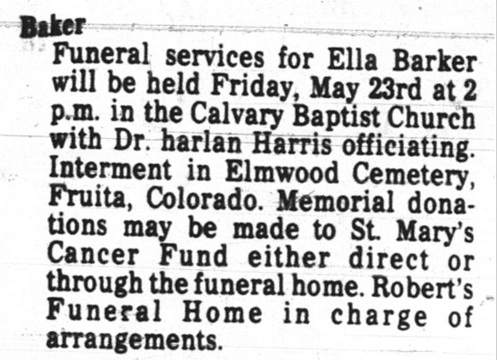Lucille Gladys Barker 1917-1941 is buried in Fruita # 74001606.